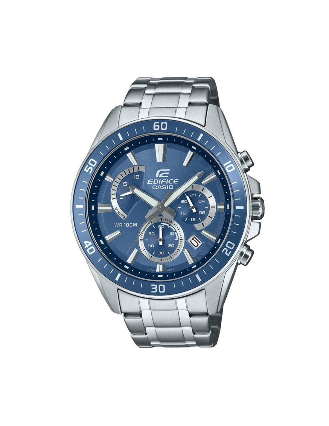 A continuación, le detallamos las características más importantes de este Casio Edifice. El color de la esfera, que es la zona más llamativa del reloj, es de color azul y su diámetro lo clasificamos como grande (+42 mm). El material de la correa del reloj Casio Edifice es de acero. Esta unidad Casio Edifice tiene una resistencia al agua de 10 Atm.