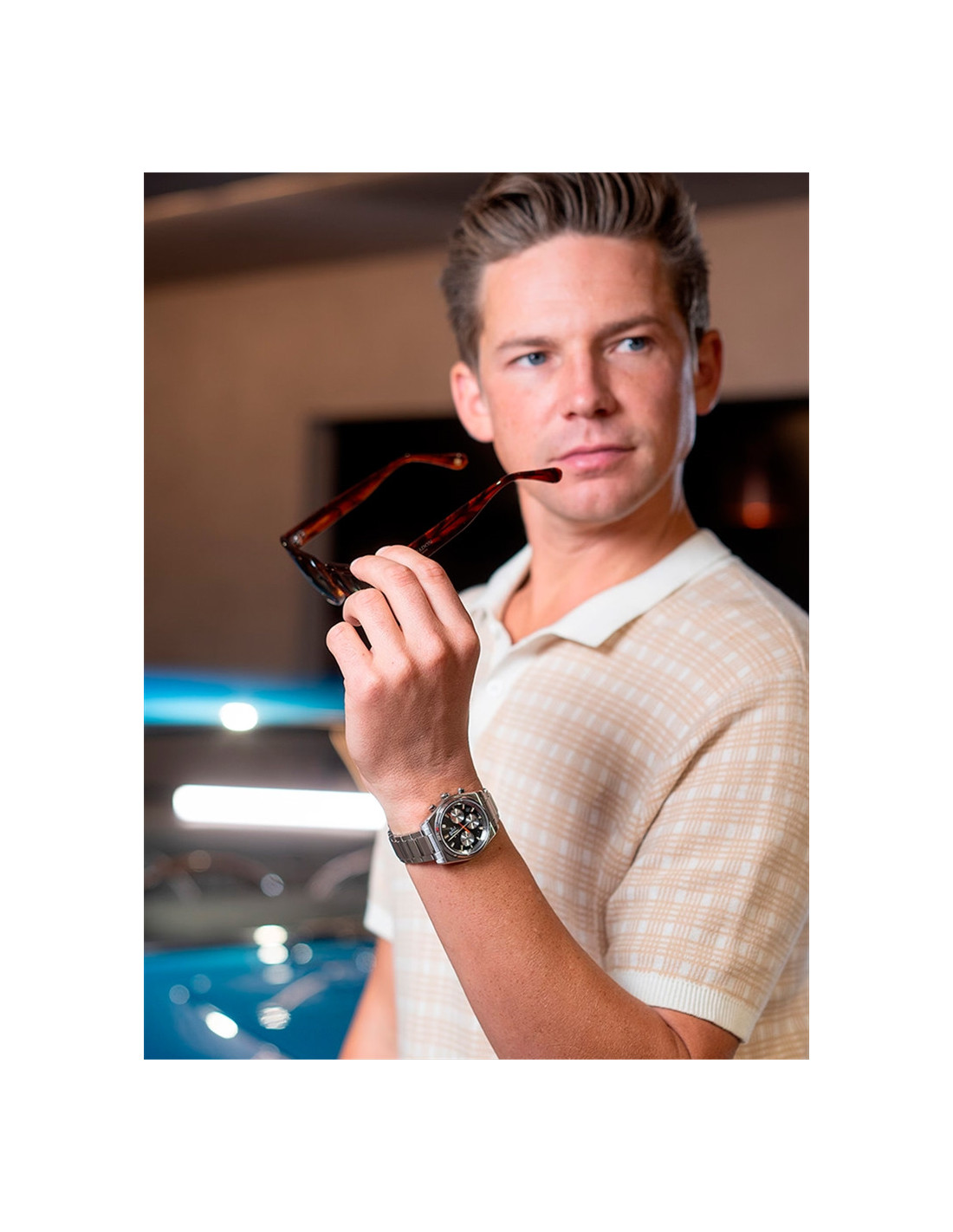 El movimiento del reloj, es decir, el mecanismo que permite marcar el tiempo, es cuarzo. La caja que custodia el mecanismo está elaborada con materiales de primerísima calidad, la caja de este modelo es de acero.