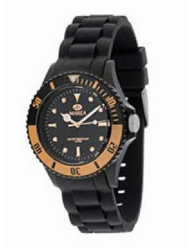 A continuación, procederemos a explicar las características más importantes de este Marea. El color de la esfera, que es la zona más llamativa del reloj, es de color negro y su diámetro es mediano (32 - 42 mm). El material de la correa del Marea es de silicona. El dispositivo Marea tiene una hermeticidad de 5 Atm.