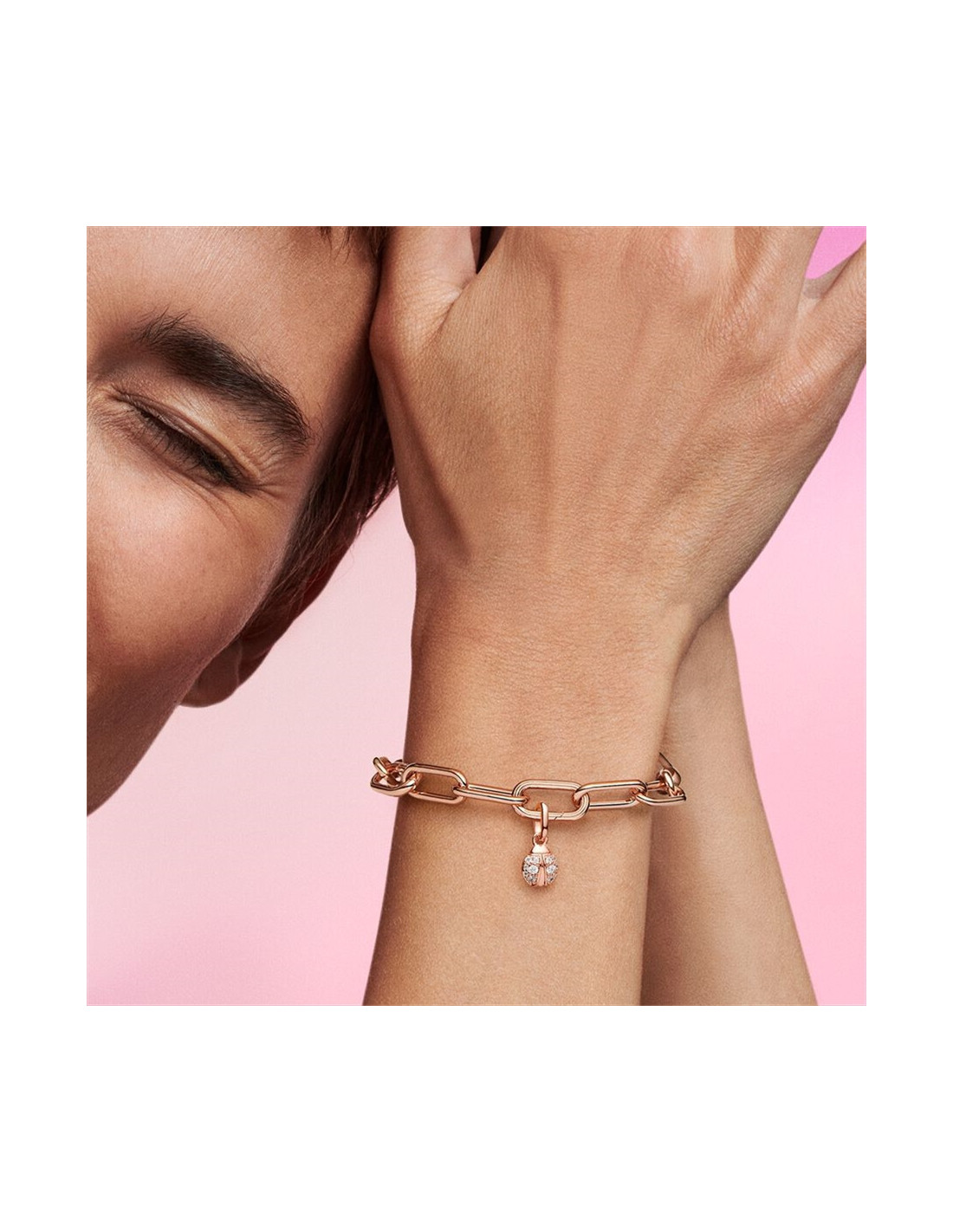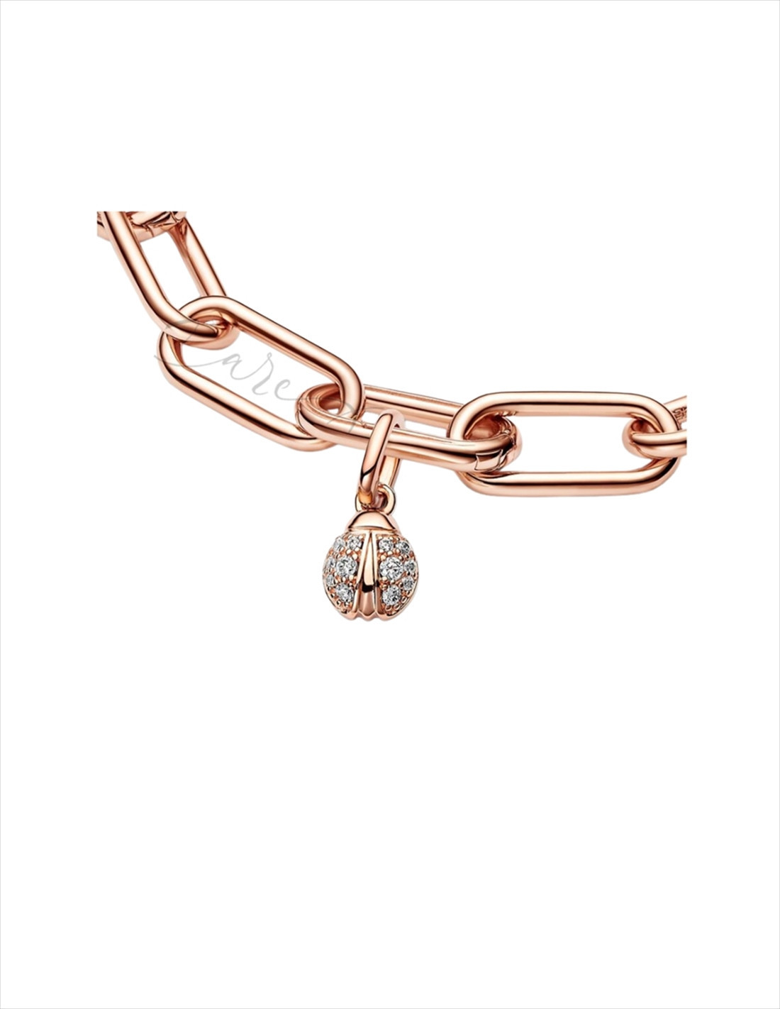 Haz que la fortuna te acompañe con el Charm Mini Colgante Mariquita de la Suerte Pandora ME. Este mini charm colgante con recubrimiento de oro rosa de 14k tiene la forma de una mariquita con las alas ligeramente abiertas y tachonadas de brillantes gemas redondas de diferentes tamaños. Este delicado charm de una mariquita, símbolo de suerte y protección. aportará un toque extravagante a tu colección. Combínalo con otros mini charms colgantes que te gustan para crear un estilo auténticamente personal. Compatible con Pandora ME y Pandora Moments.