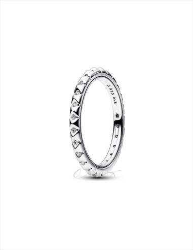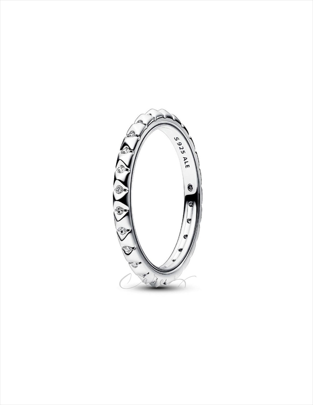 Este Anillo Pirámides de Pandora ME en plata de primera ley se inspira en la década de los 90. Se presenta decorado con tacos piramidales y circonitas cúbicas transparentes engastadas entre ellos. Una línea acanalada a lo largo de los bordes del anillo ap