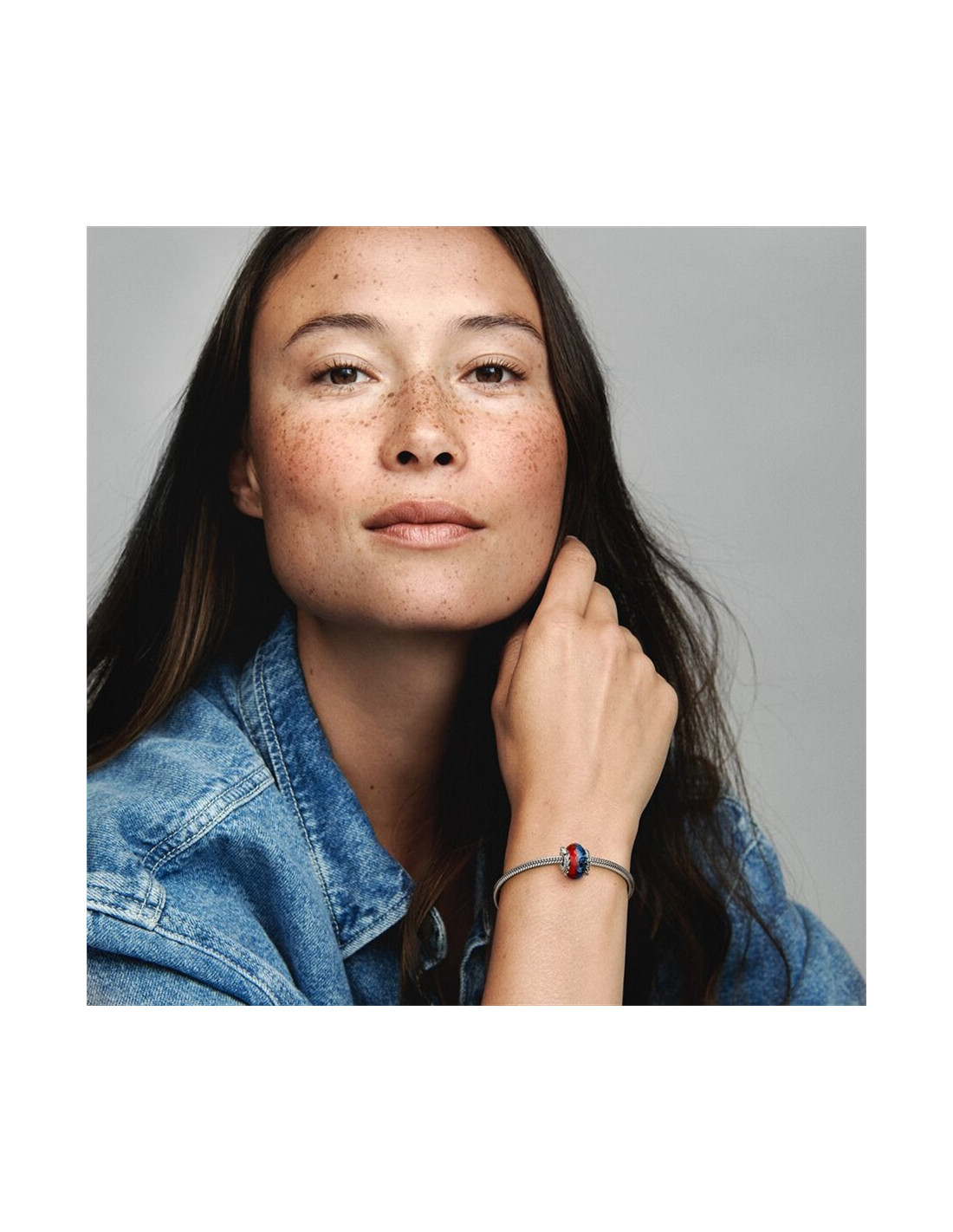 Representa tu reino cuando lleves el Charm de Cristal de Murano Doble Dragones de Hielo y Fuego de Juego de tronos. Creado con cristal de Murano en colores rojo y azul que se une a la perfección en el centro, este charm de dragones se presenta con un centro en plata de primera ley que representa a los dragones con sus cabezas, cuerpos y colas de escamas. Este charm de cristal Murano es imprescindible para los amantes de Juego de Tronos que muestran su amor por esta serie de un modo sutil y sofisticado.