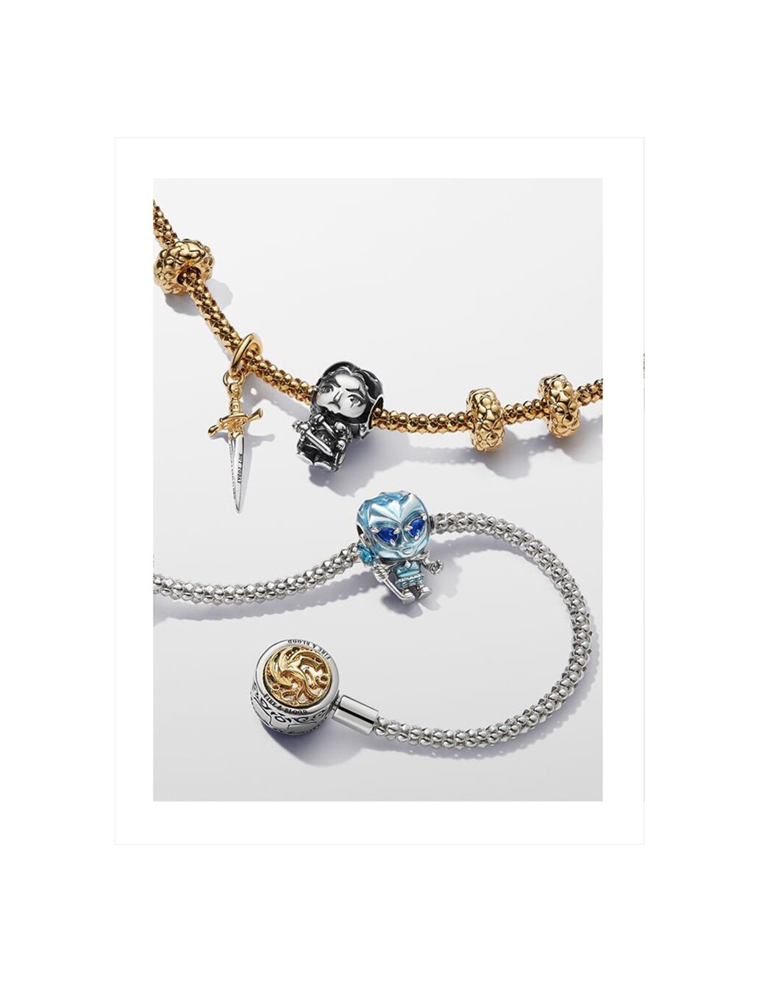 Lleva el invierno con el Charm White Walker de Juego de Tronos. Fabricado en plata de primera ley, este charm del White Walker se ha embellecido con esmalte de color azul claro transparente aplicado a mano que le aporta un toque 'gélido'. El White Walker también tiene dos cristales sintéticos en forma de pera como ojos y sostiene su icónica lanza con una brillante gema en la parte superior. Inspirado en los habitantes originales de Poniente, este temible líder del Ejército de los Muertos sirve como recordatorio de la tenacidad y la determinación.