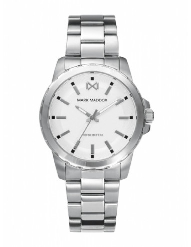 A continuación, procederemos a explicar las características más importantes de este Mark Maddox. El color de la esfera, que es la zona más llamativa del reloj, es de color blanco y su diámetro es mediano (32 - 42 mm). El material de la correa del Mark Maddox es de acero. El dispositivo Mark Maddox tiene una hermeticidad de 5 Atm.