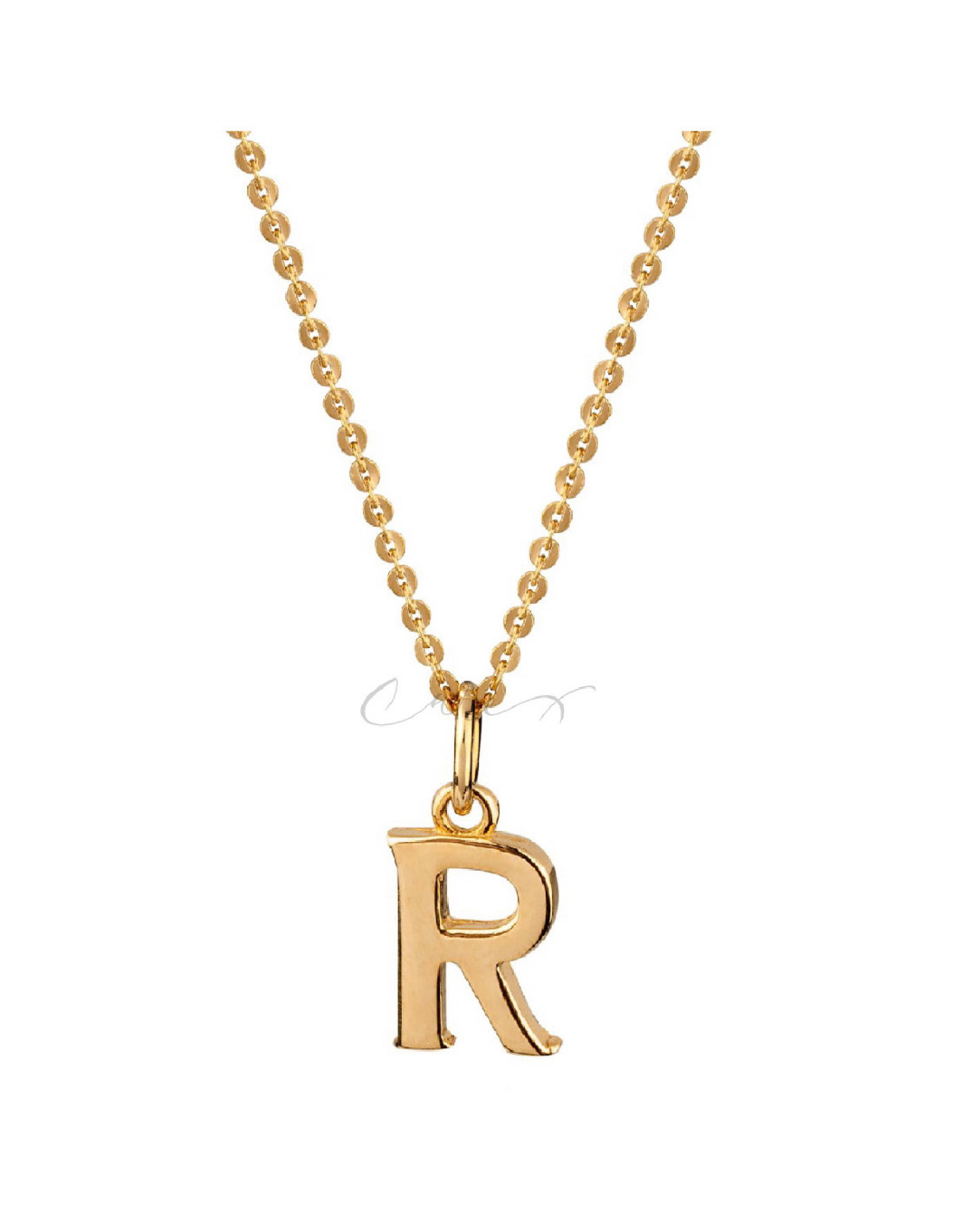 Colgante Colección Essentials letra R Plata Chapada en Oro de 18Kt. Cadena 38 cm+ Extender 6 cm. Combina varios collares y crea el efecto layering tan de moda. Vidal & Vidal, joyas hechas en España.