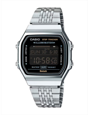 A continuación, le detallamos las características más importantes de este Casio Vintage. El color de la esfera, que es la zona más llamativa del reloj, es de color negro y su diámetro lo clasificamos como mediano (32 - 42 mm). El material de la correa del reloj Casio Vintage es de acero. Esta unidad Casio Vintage tiene una resistencia al agua de Water Resist.