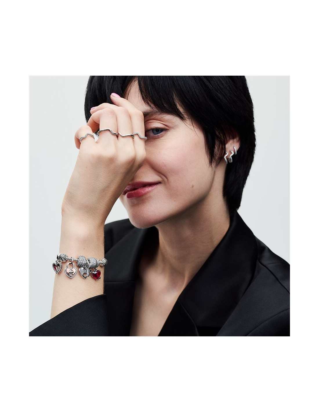 Libera tu amor con nuestro Charm Colgante Corazón y Llave Divisible. Este charm colgante de dos piezas incluye un brillante colgante embellecido con pavé que encaja a la perfección en el recorte de la pieza con forma de corazón. En el disco con forma de corazón, la palabra 'Love' (Amor) se presenta, por encima del recorte, con letras decoradas con gemas brillantes. Luce ambas piezas juntas o comparte la llave con la persona propietaria de tu corazón.