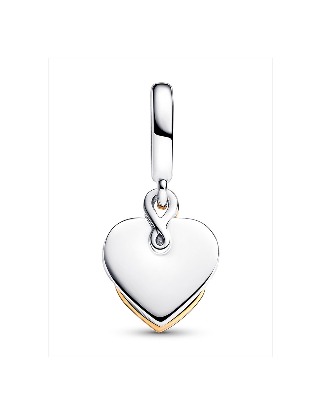 El poder del amor materno brilla intensamente en nuestro Charm Colgante Doble Grabable Mama con un Diamante Sintético Creado en Laboratorio. Decorado con el motivo de un corazón con un recubrimiento en oro de 14k sobre un disco con forma de corazón entrelazado con un corazón en filigrana inspirado en un nudo, representa el amor infinito que se siente por una madre. Un diamante creado en laboratorio de 0,009 quilates brilla en el centro, simbolizando su belleza. El otro disco en plata de primera ley se ha decorado con una emotiva inscripción que dice 'Mum you are so precious to me' (Mamá, qué valiosa eres para mí, en español), mientras que su reverso se puede grabar para darle un toque personal. Observa que cada diamante creado en laboratorio de Pandora se trata posteriormente para mejorar su color a través de un proceso que recibe el nombre de 'recocido'.