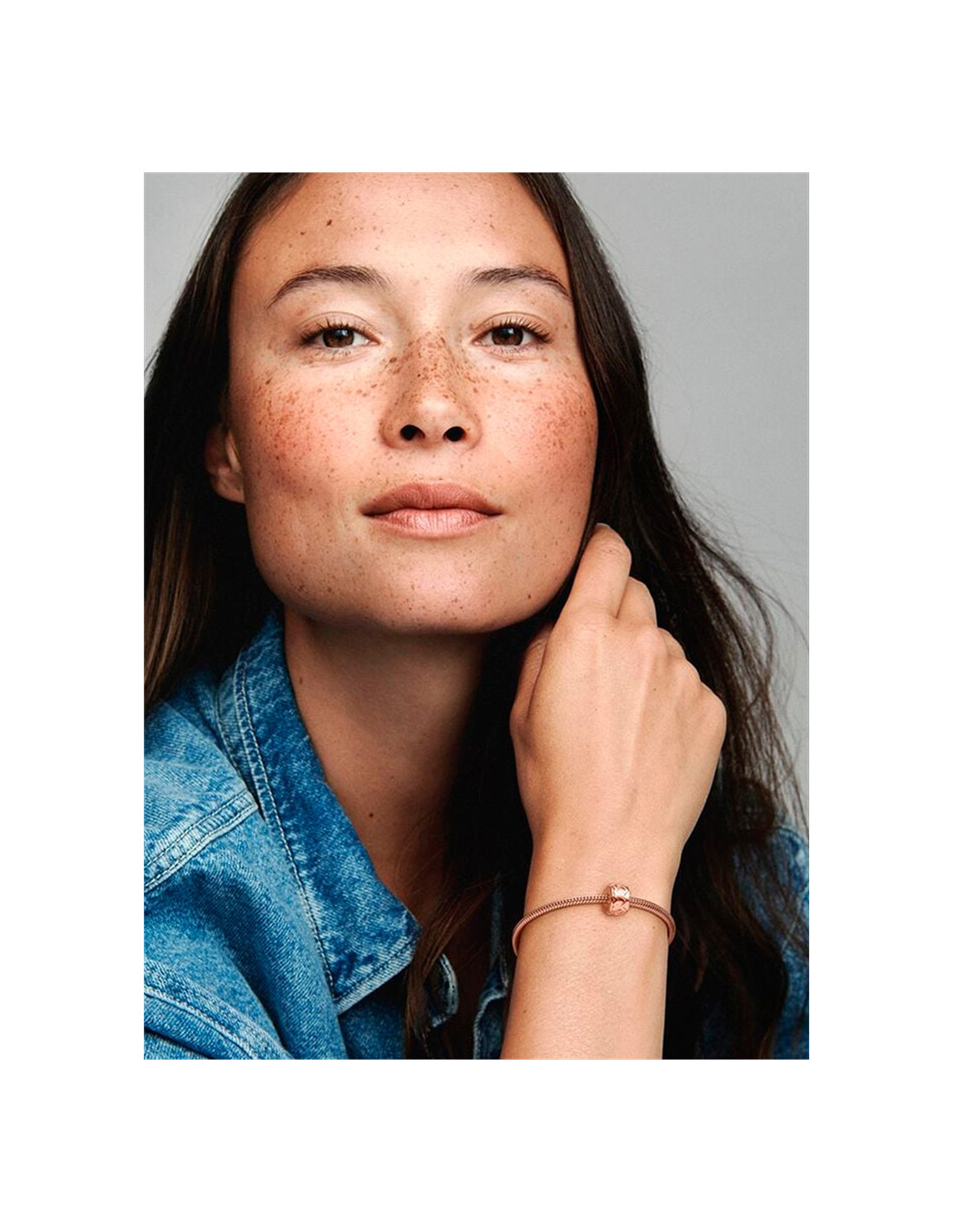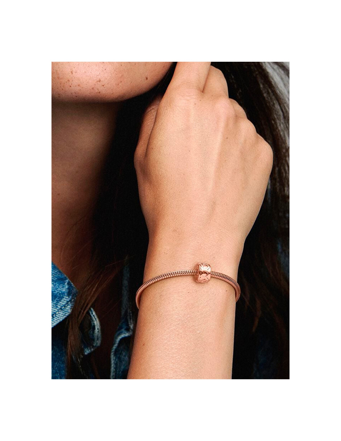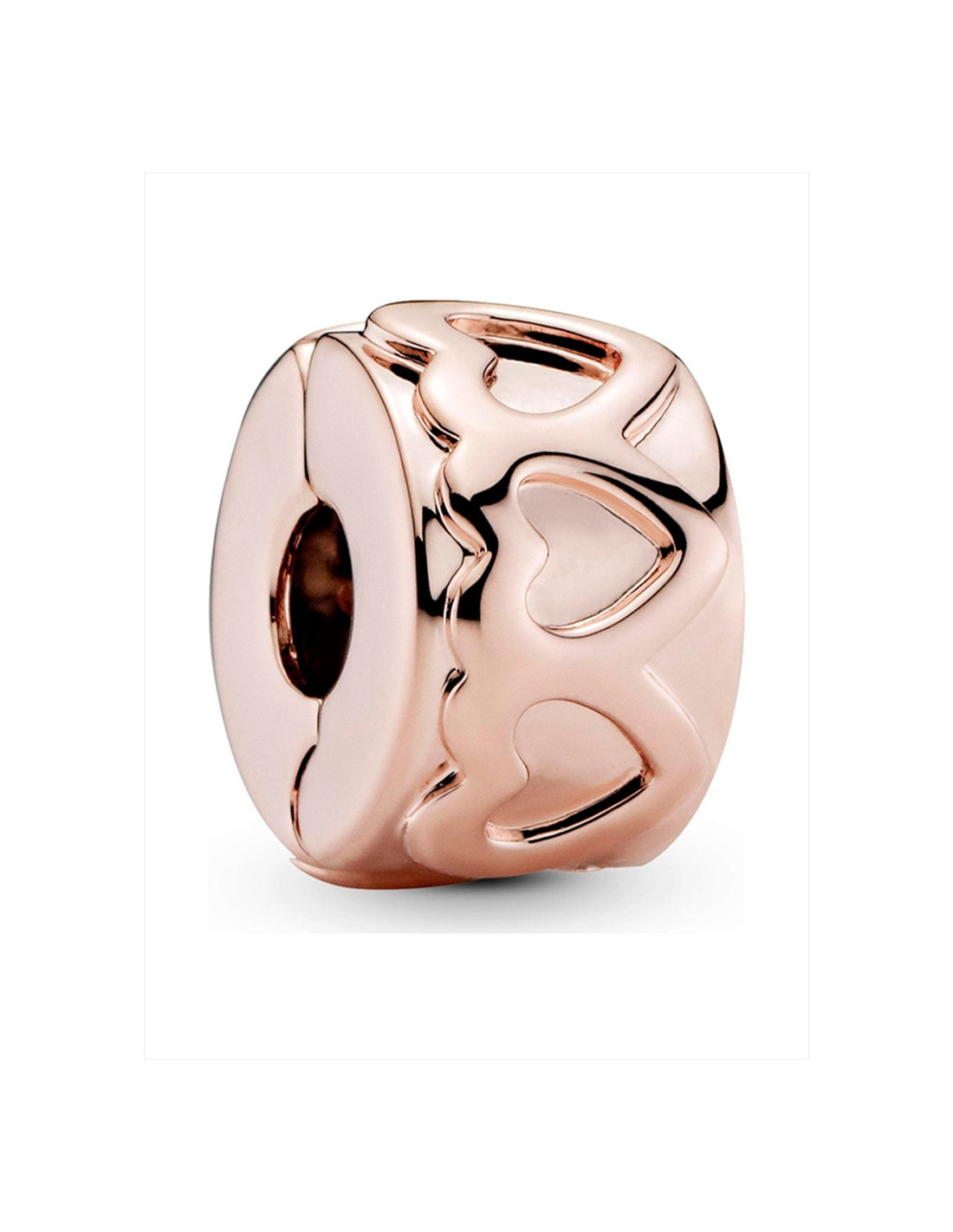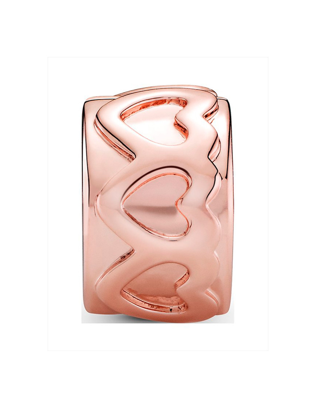 Perfecto para añadir significado a tu brazalete de Pandora Moments, nuestro Charm de Clip Alianza de Corazones se presenta decorado con una fila de románticos corazones. El diseño en relieve con un recubrimiento de oro rosa de 14 K aporta una dimensión sutil al estilo. Utiliza esta pieza acabada a mano en plata de primera ley con otros charms favoritos para crear una brillante historia de quién eres. Este clip carece de agarre de silicona, por lo que se deslizará si no se coloca sobre las roscas (dos charms separadores elevados).