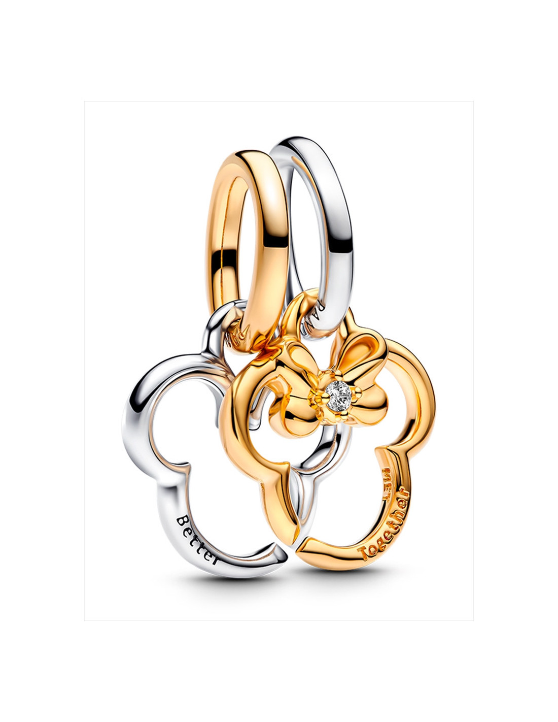 Celebra el amor verdadero con Mickey Mouse y Minnie Mouse de Disney. Los contornos divisibles se presentan con las inscripciones “Better” (Mejor, en español) y “Together” (Juntos, en español). Usa y comparte estos charms especiales como recordatorio de lo bien que encajan entre sí.