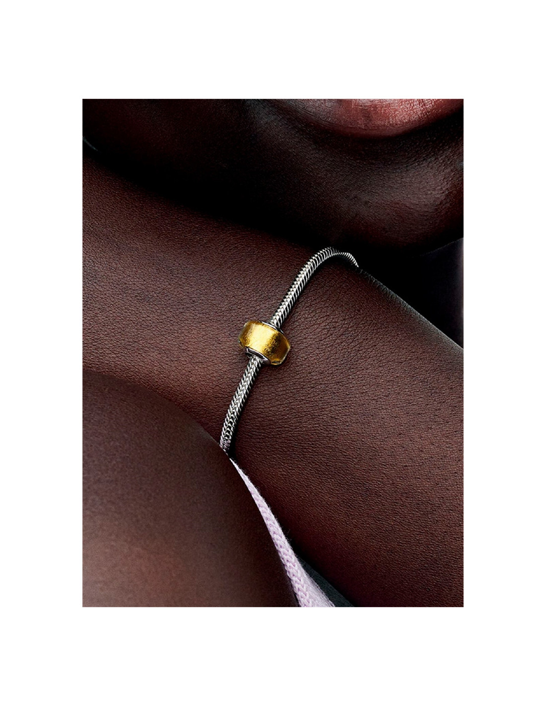 Un diseño clásico actualizado con tonos dorados. La lámina en oro de 24k del núcleo del charm brilla a través del cristal de Murano transparente, creando un efecto de dos tonos. Delicado y versátil, este charm de oro se ha diseñado con un perfil cuadrado en un tamaño ligeramente más pequeño.