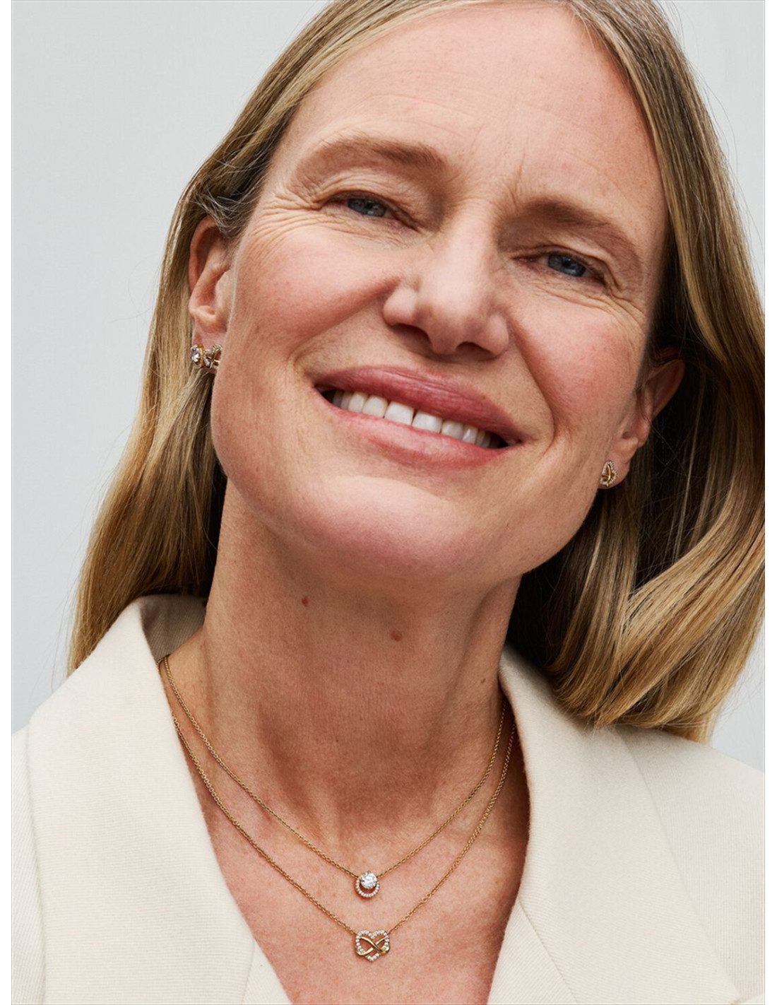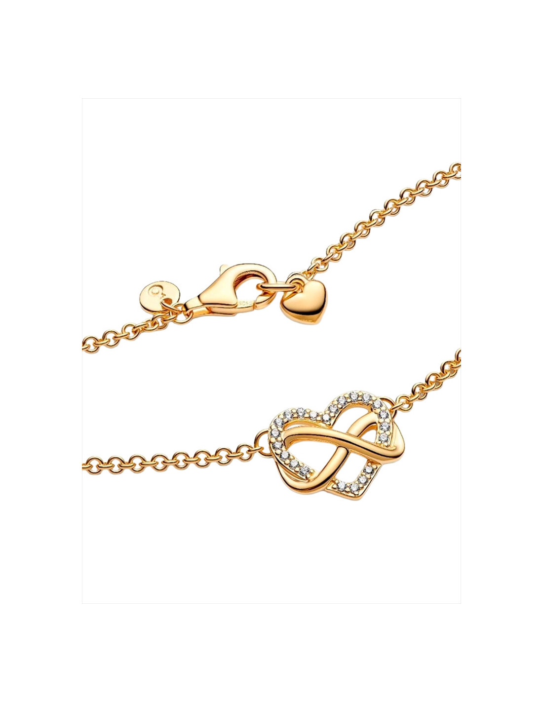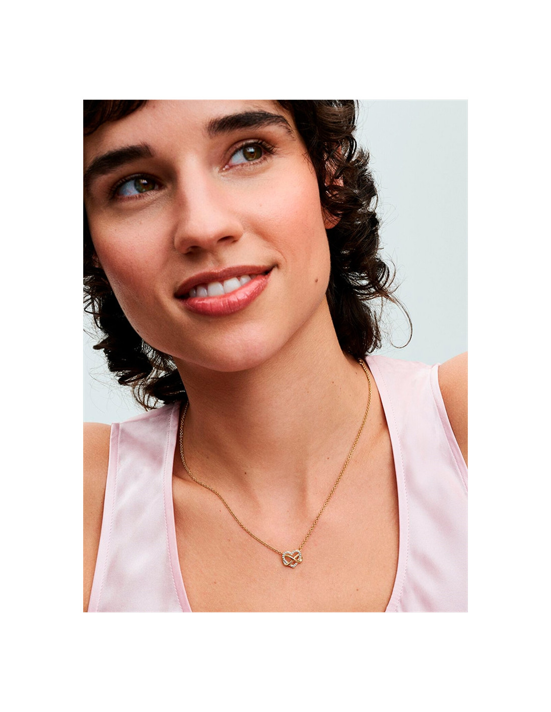 El Collar Corazón Infinito Brillante con un recubrimiento en oro de 14k es una joya versátil perfecta para ocasiones especiales y para usar a diario. El colgante de corazón en filigrana se ha adornado con 22 circonitas cúbicas con talla brillante y enmarc
