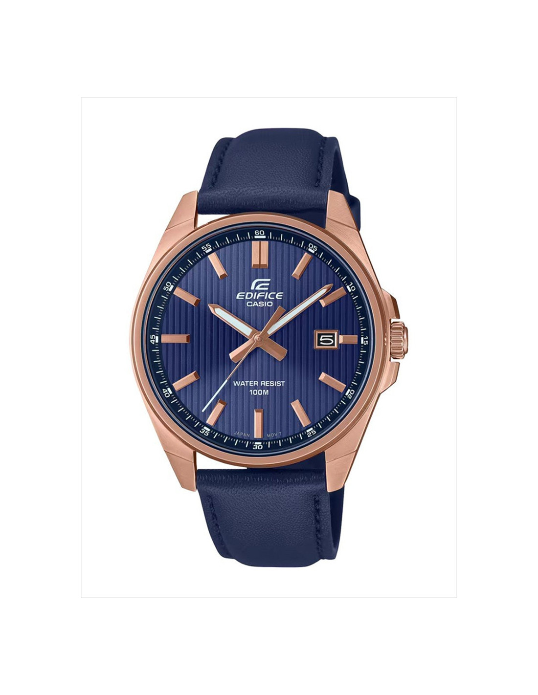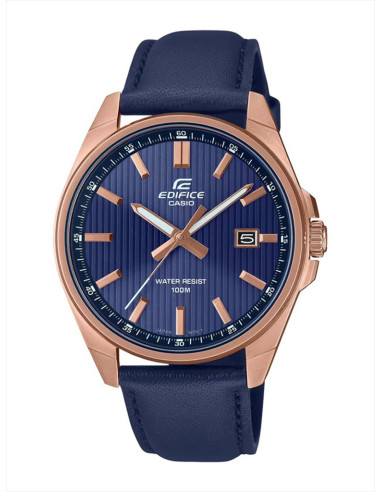 A continuación, le detallamos las características más importantes de este Casio Edifice. El color de la esfera, que es la zona más llamativa del reloj, es de color azul y su diámetro lo clasificamos como grande (+42 mm). El material de la correa del reloj Casio Edifice es de cuero. Esta unidad Casio Edifice tiene una resistencia al agua de 10 Atm.