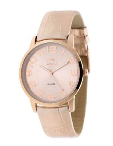 A continuación, procederemos a explicar las características más importantes de este Marea. El color de la esfera, que es la zona más llamativa del reloj, es de color rosa y su diámetro es mediano (32 - 42 mm). El material de la correa del Marea es de cuero. El dispositivo Marea tiene una hermeticidad de 3 Atm.