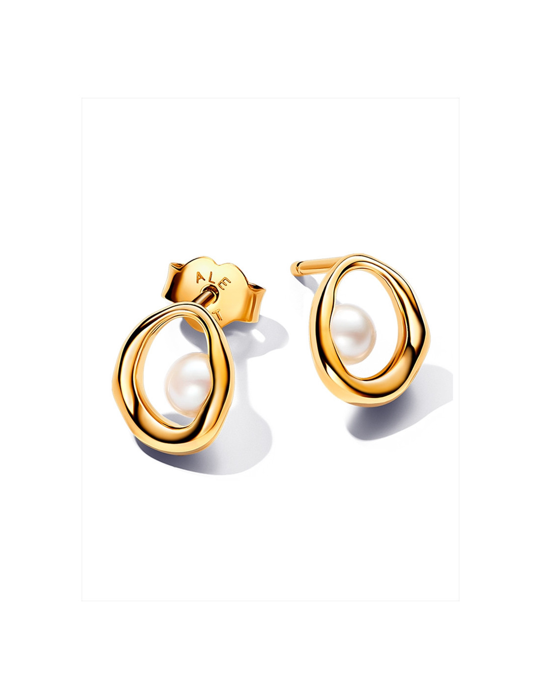 PENDIENTES DE BOTÓN PANDORA ÓVALOS FORMA ORGANICA Y PERLA CULTIVADA DE AGUA DULCE 263295C01